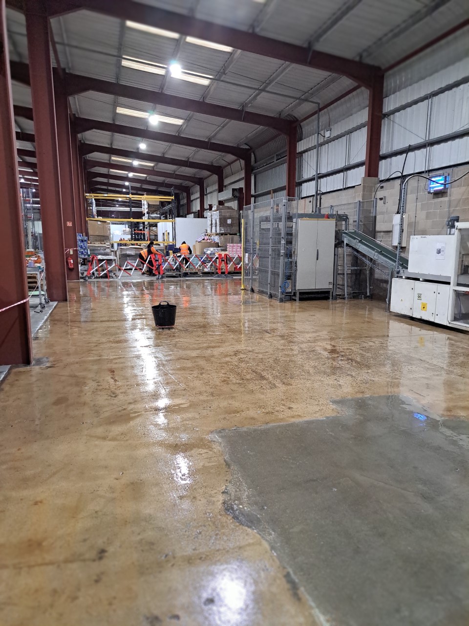Expansion joints were reflected in the new epoxy resin flooring using a vacuum controlled floor saw to prevent reflective cracking in the finished floor. These joints were then sealed using a flexible polyurethane jointing compound.