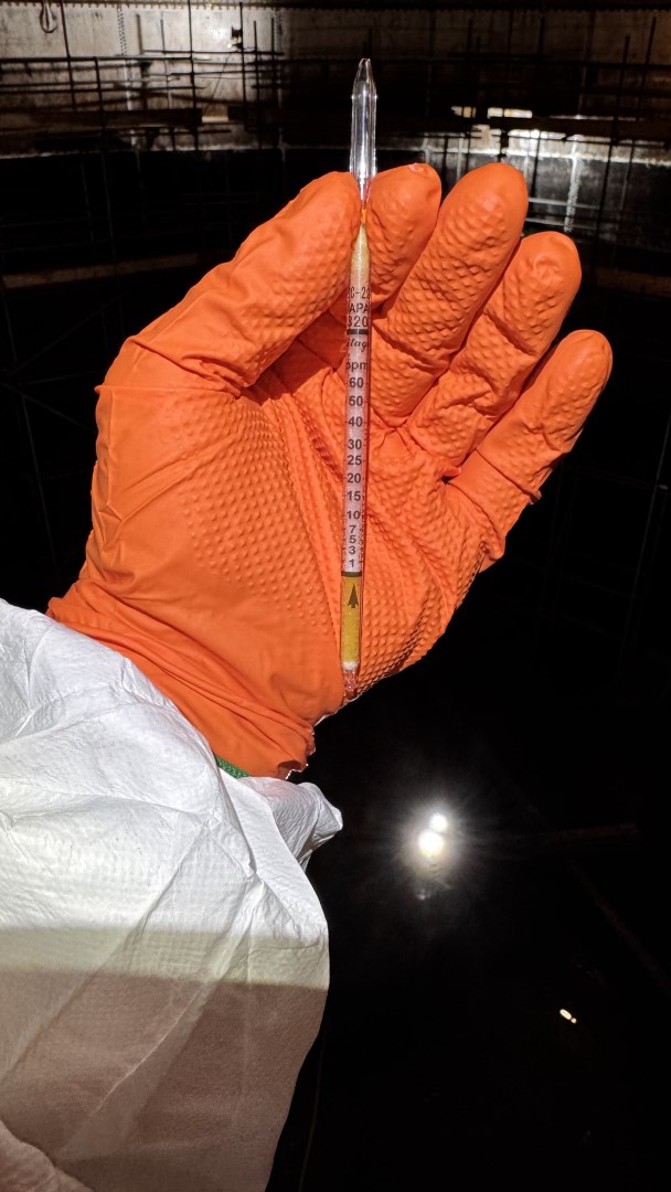 The cured lining was tested using a DC holiday spark tester to identify and address any pinholes, ensuring full continuity of protection — crucial for tank corrosion repair in aggressive waste water environments.