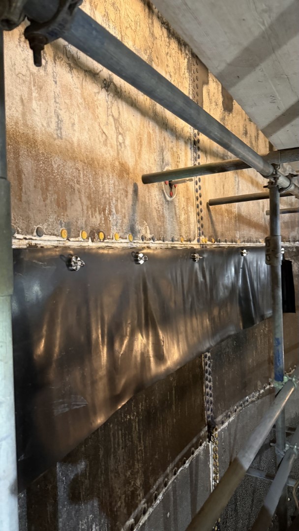 A glass fused to steel effluent tank in Buckinghamshire was experiencing significant leakage due to corrosion and perforations within the gas space. Temporary patch repairs had been attempted previously, but the client required a long-term industrial tank lining solution that would ensure full containment and protect the structure against further degradation.