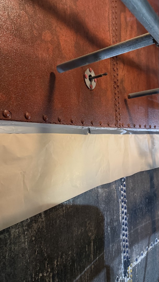 Adjacent panels not being coated were temporarily protected with rubber sheeting.