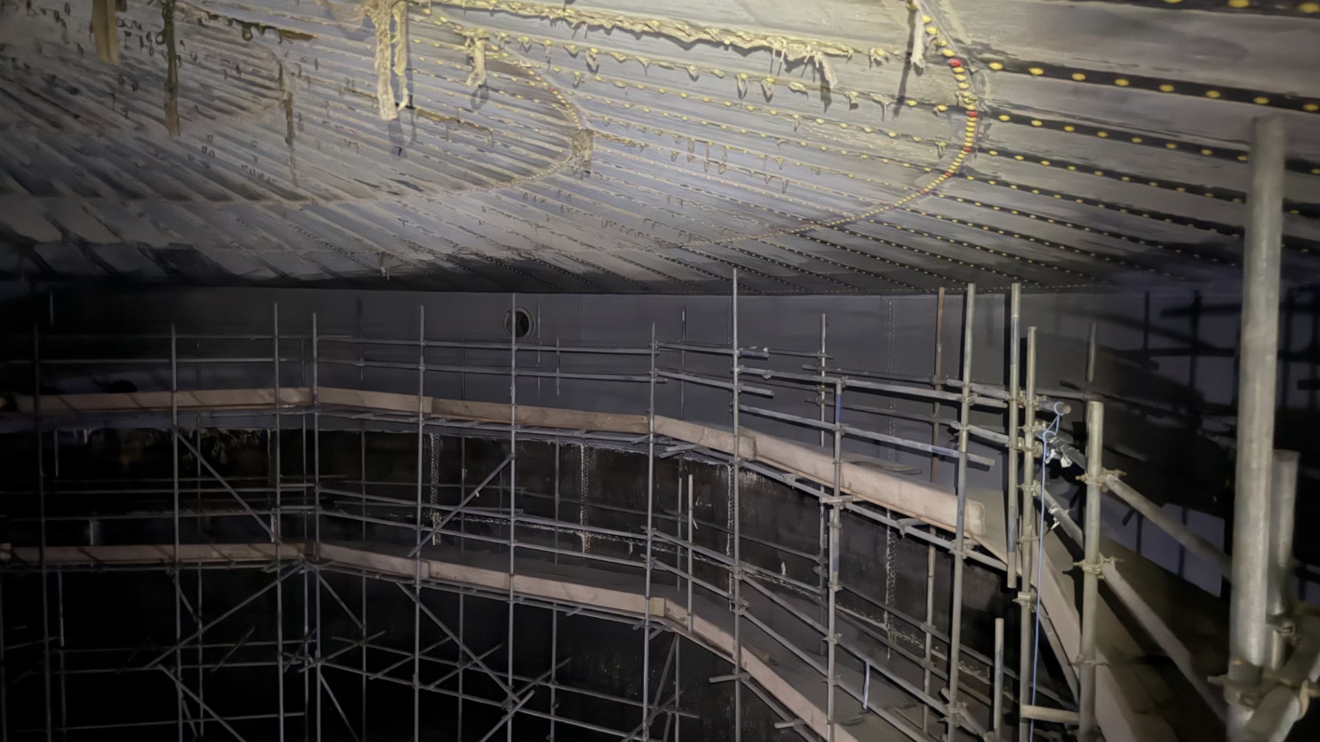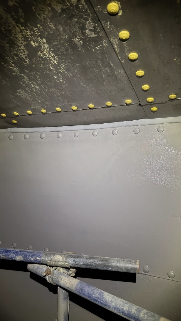 Our trailer-mounted unit was mobilised to site, and SPI Corrolastic UB was spray-applied to a nominal thickness of 2mm across all prepared surfaces.