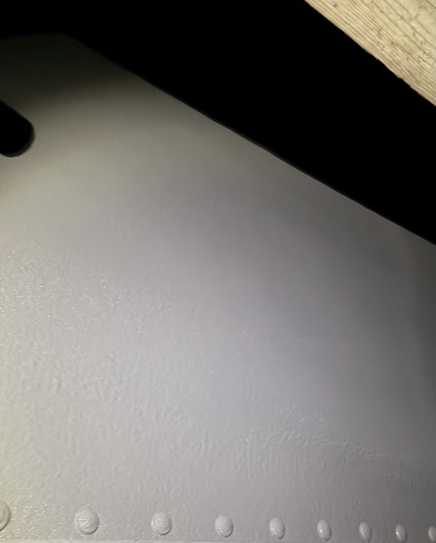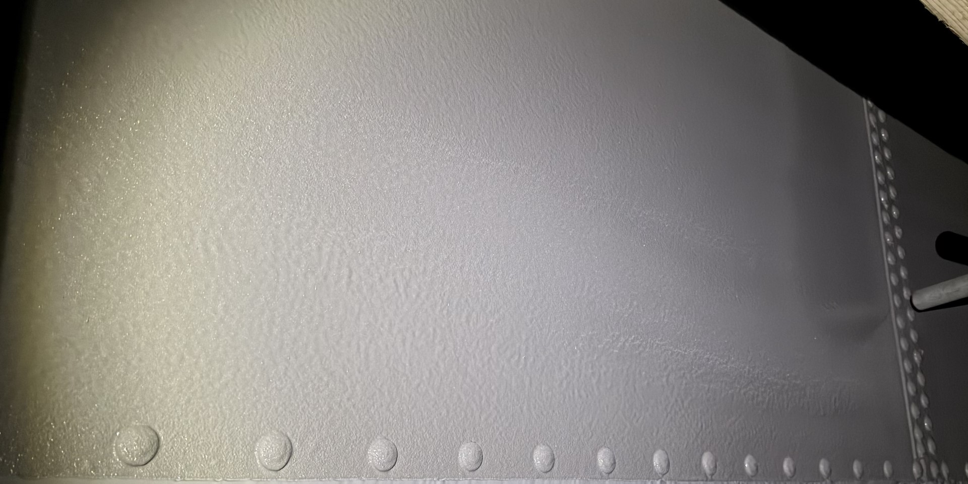 All surfaces were steam cleaned with an emulsifying degreaser to remove fats, greases, and soluble contaminants. Effective soluble salt removal is critical, as remaining salts can lead to osmotic blistering beneath the tank lining.